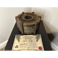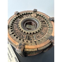 The SunDial puzzle box is the Sequel to the Sea Chest puzzle box. It is the the second box in the the Voyager Trilogy. This puzzle is designed and built by Jesse Born and Robert Yarger. The SunDial is a sequential discovery puzzle with six secret compartments. The goal of the puzzle is to navigate the compartments, find tools to help solve puzzles, and retrieve the final prize; a Citrine Gemstone.