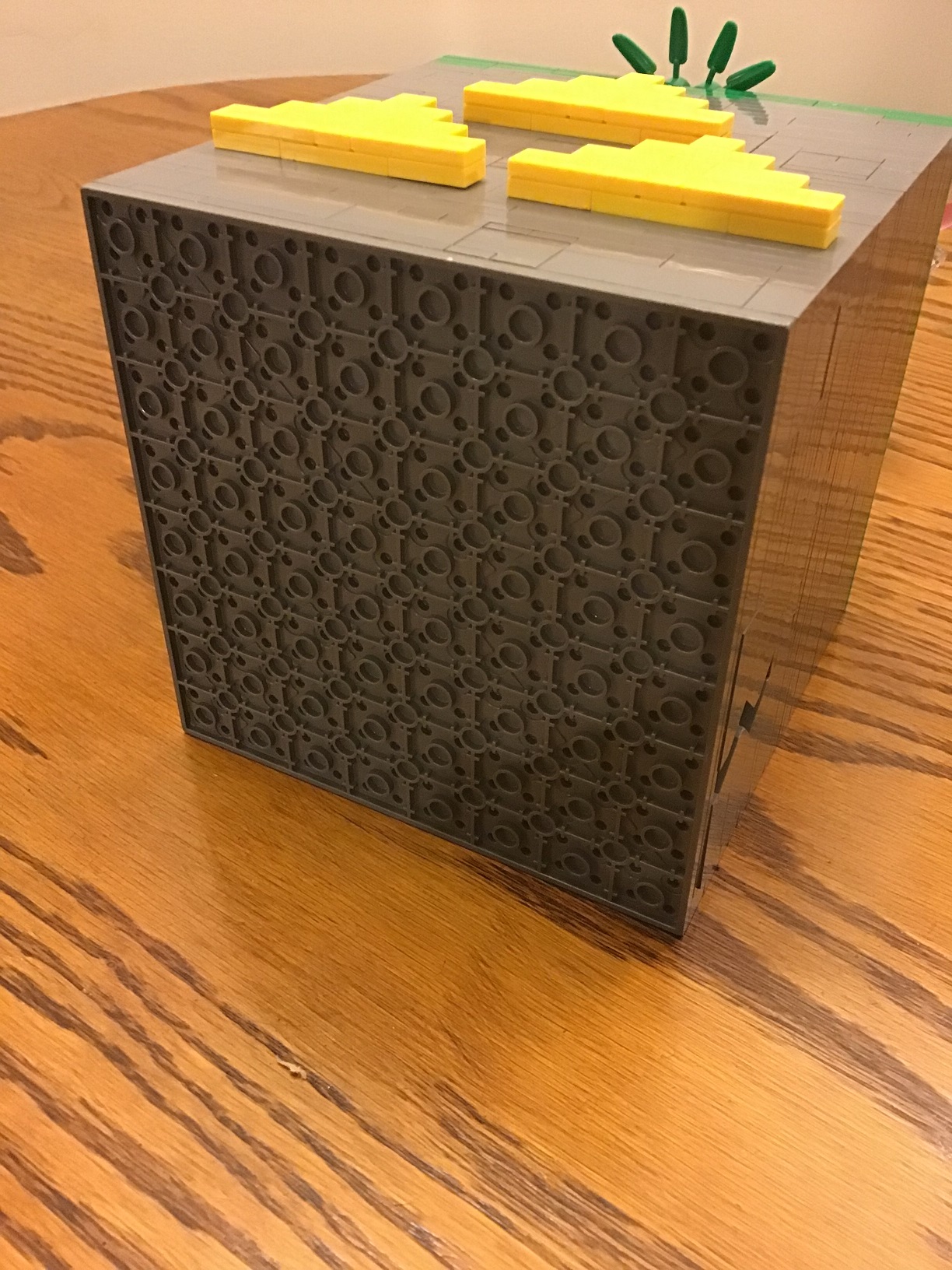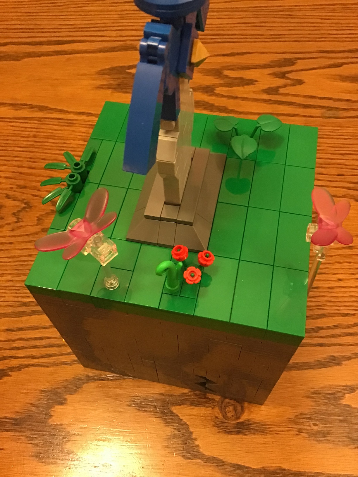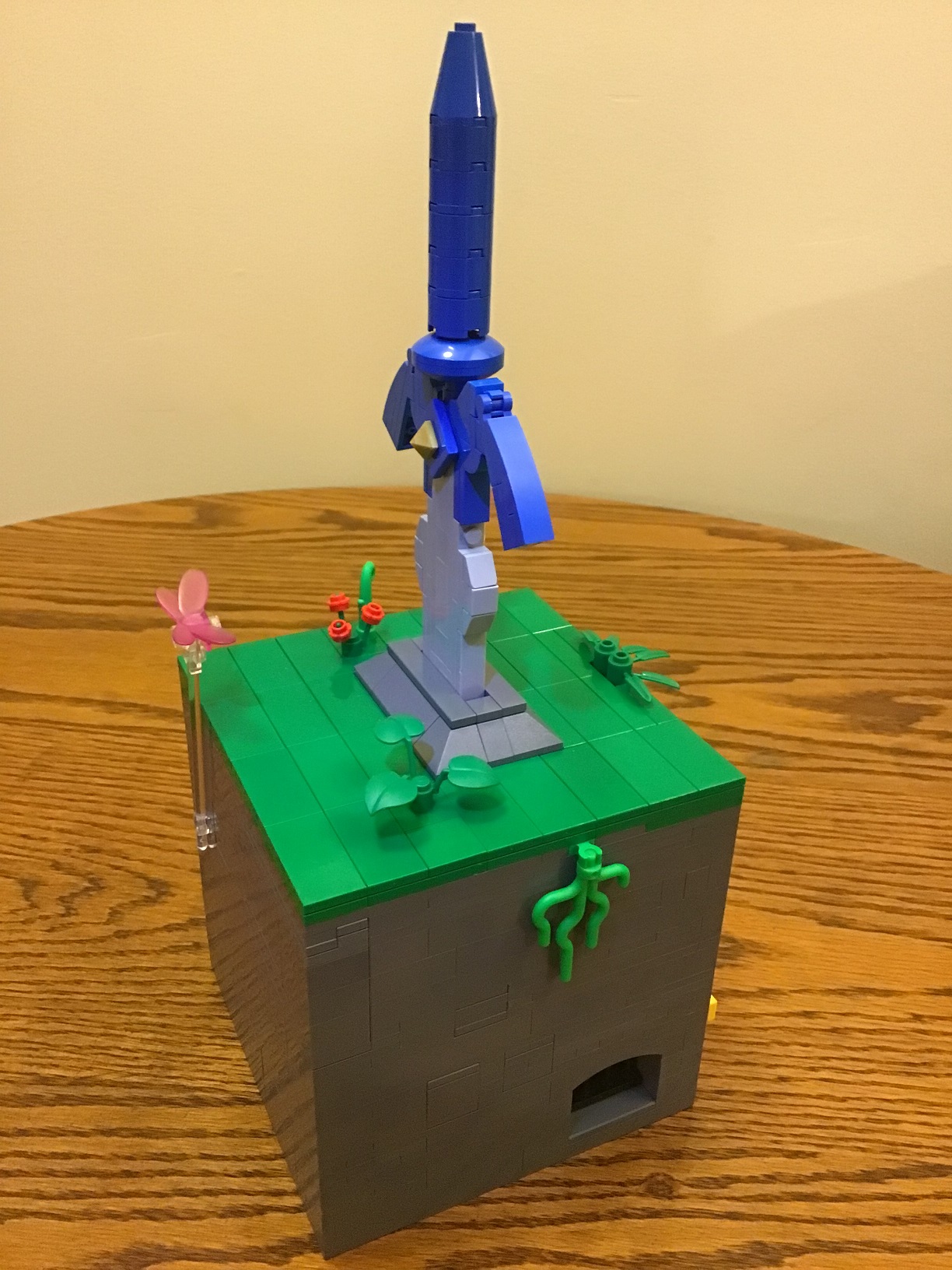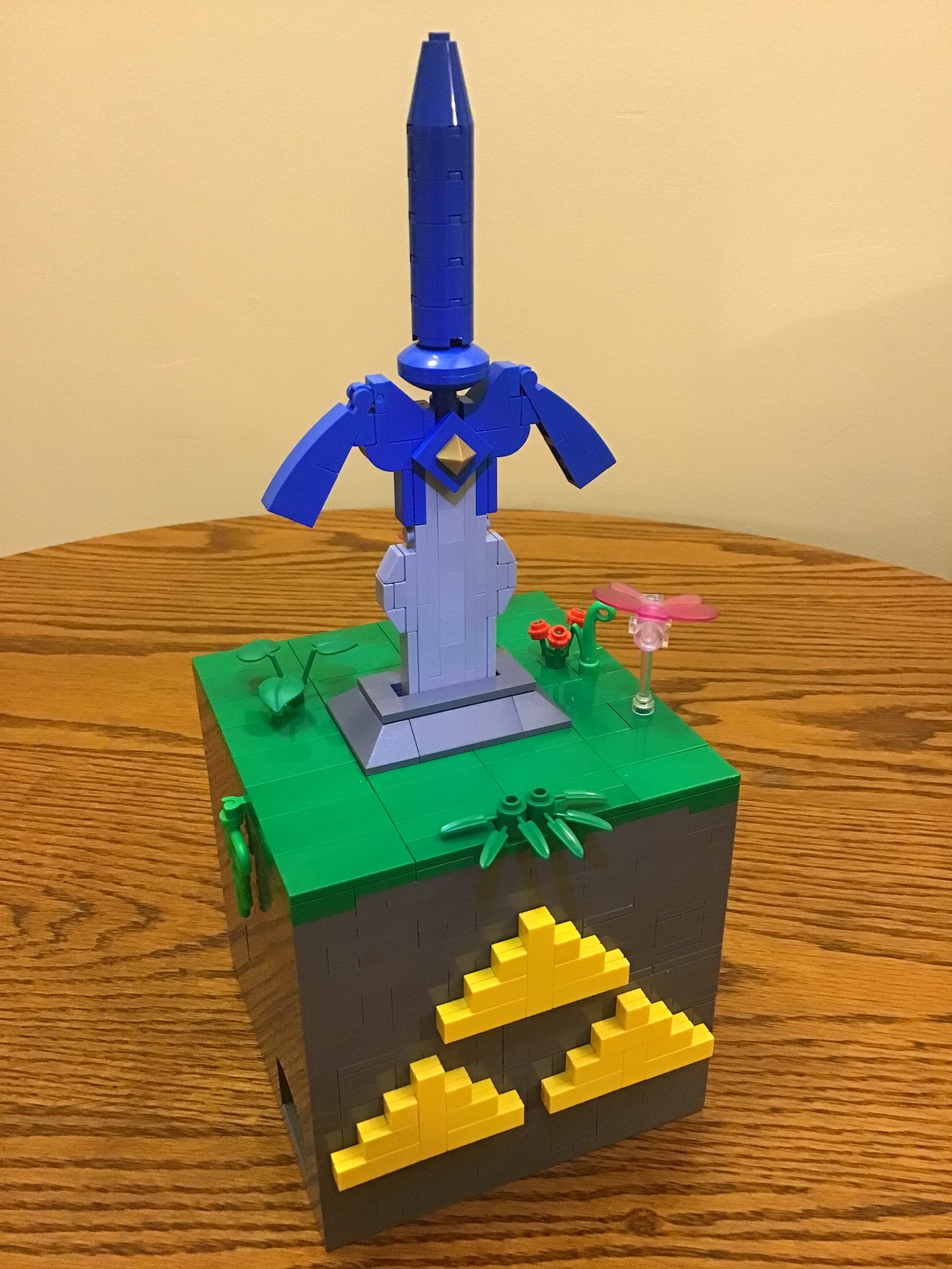 This is a work of video-game-inspired art in lego form and is also quite hefty, weighing about 3 pounds! It measures 6.3 x 5.7 x 12.2 inches, or 16.0 x 14.4 x 31.0 in centimeters.