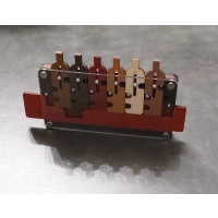 A fun sequential movement whose goal is to remove completely the tray by moving the bottles up and down. I am not the original owner but the puzzle is still in good condition and it works great. Solved several times.