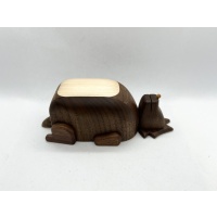 Wolf from Grimm is a fantastic example of celebrated puzzle craftsman Osamu Kasho’s singular combination of playful, character-driven Karakuri design coupled with delightful puzzling mechanic. It presents you with a sleeping, seemingly content wolf. Can you open him up and discover what he just ate? This is a wonderful puzzle that is fun to solve and looks great on display. All original packing material is included.