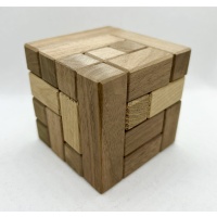 Tom Jolly’s Threaded Cube from 2004 is one of the early TICs – Turning Interlocking Cubes. 5 pieces come together to for a 4x4x4 cube, requiring a total of 14 moves to assemble including rotations. This is one of 8 made by Bernard Schweitzer. An additional 15 were subsequently made by Brian Menold/Wood Wonders.