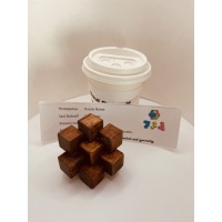 This is Stewart Coffin’s follow up to his Three-Piece Block puzzle (Design #38) that stumped many puzzlers over the years! This one was used by Saul at IPP 38 for his Exchange Gift and packed the pieces in a coffee cup, it’s as equally difficult to assemble as the original.