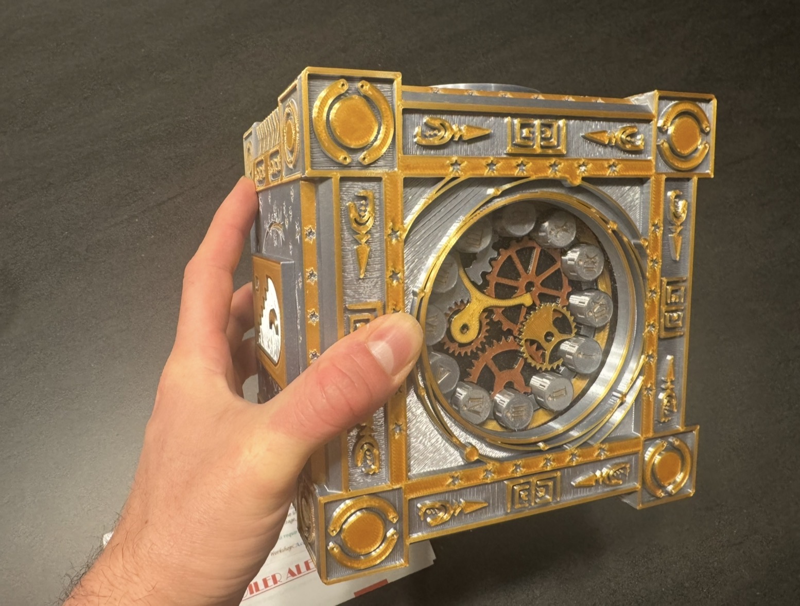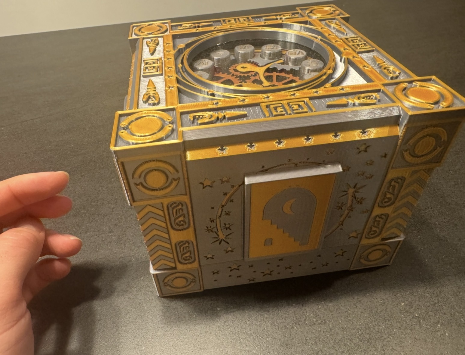 I promise to package the puzzle like a collector.You can combine the puzzles I currently have for sale to reduce shipping costs. Steam Turbine Puzzle BoxThe Steam Turbine - A sequential discovery puzzle box and a fun brain teaser with various tools that are discovered on your journey through the box. The goal is to open the locked compartment.Material: PLA plastic. Dimension: 150x150x150 mm. The locked compartment is 52x80x80mm. Weight: 1200 g