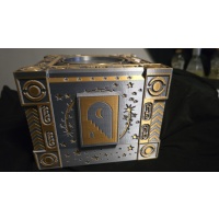 Dragon Box is H:6 1/2" x W:5" x L:5" in size and weight 2 3/4 lbs, it has a centre cylindrical compartment Dia:4" x H:1" in size to hold gifts/messages for player.