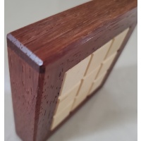 Construction of this puzzle was...interesting. Tom's idea was to glue the pieces together out of flat stock, but where's the fun in that? I decided to mill them from solid stock, a decision I later questioned. The protrusions are several thousandths undersize relative to the grooves to insure smooth, non-binding movement. Those of you who make things will immediately understand that doing so creates a lot of headaches and a lot more work. In the end it was worth it...this puzzle moves smoothly all the way around with no binding. The frame is oversize by 25 thousandths to give the pieces room to expand and contract with humidity.