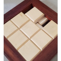 Oh Tom, you crafty little devil. Once again he comes out with a very interesting and unique design that I can't resist making. Tom's Square Dance consists of nine pieces which interlock into the surrounding frame. With a unique level 1.8.5.3.4 solution, this is a tricky nut to crack. Simply identifying piece positions is quite tricky, and sorting out the insertion order and moves necessary simply compounds the difficulty. Definitely doable, but definitely difficult. I'm taking pity on you guys and shipping this one assembled!