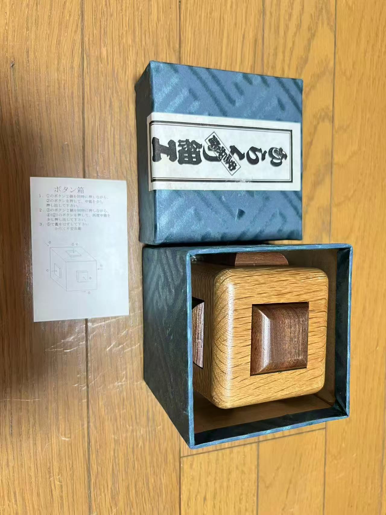 Traditional Japanese Puzzle Box - "Yasubei Button Box" - Secret Mechanism - Wooden Craft - Rare