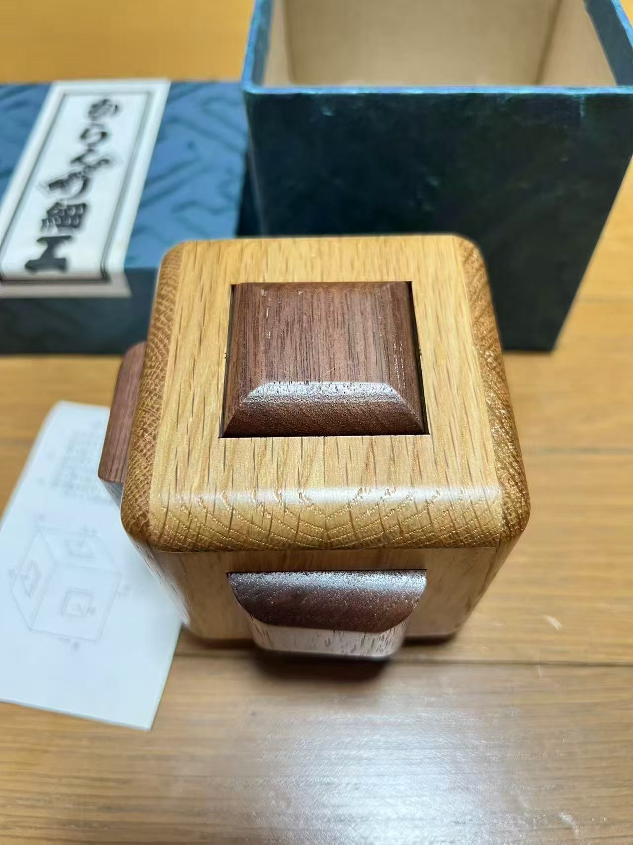 At first glance, it appears to be an ordinary wooden box. However, it features a secret locking mechanism and cannot be opened without performing a specific sequence of moves. This is a collector's item that showcases the wisdom and masterful craftsmanship of Japanese traditional "Karakuri" (mechanized puppets/devices).