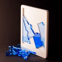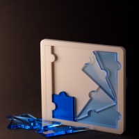 This puzzle quite cool and has 9 pieces in total. There are two different challenges. The tray has an extra piece which can be inserted on the bottom part of the puzzle or the top part of the puzzle. So the goal is to fit all pieces inside each tray and it has some satisfying solutions!