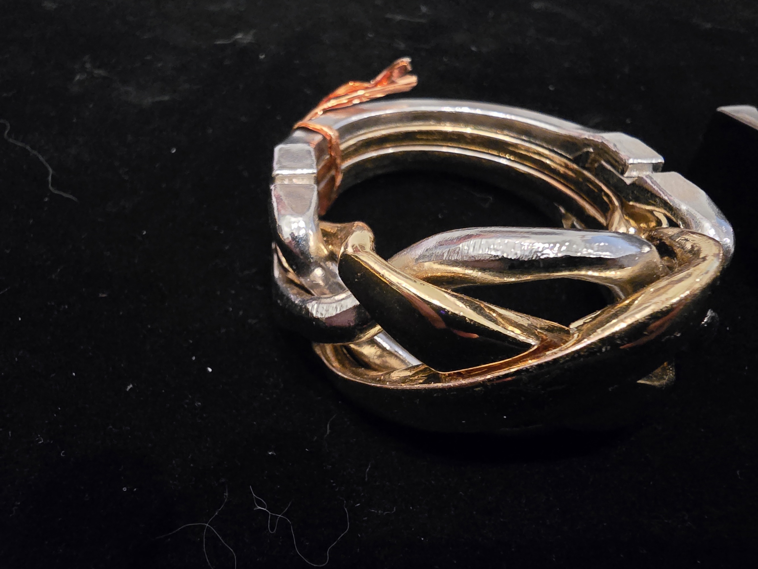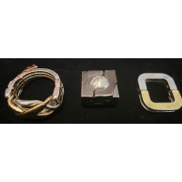 Up for auction is a curated set of three high-quality metal mechanical puzzles. This bundle features the legendary Hanayama Cast Marble, a Level 5 challenge known for its weight and smooth, satisfying solution. Also included is a stylish "UNBOUND" 4-band puzzle ring (two-tone), currently wired to remain solved but ready for your next attempt. Completing the set is a matching two-tone interlocking square frame.