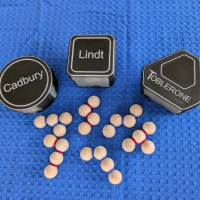 All six solid maple pieces pack into each of the three provided candy boxes, Cadbury, Lindt and Toblerone.  You should definitely have some chocolate on hand when solving this!