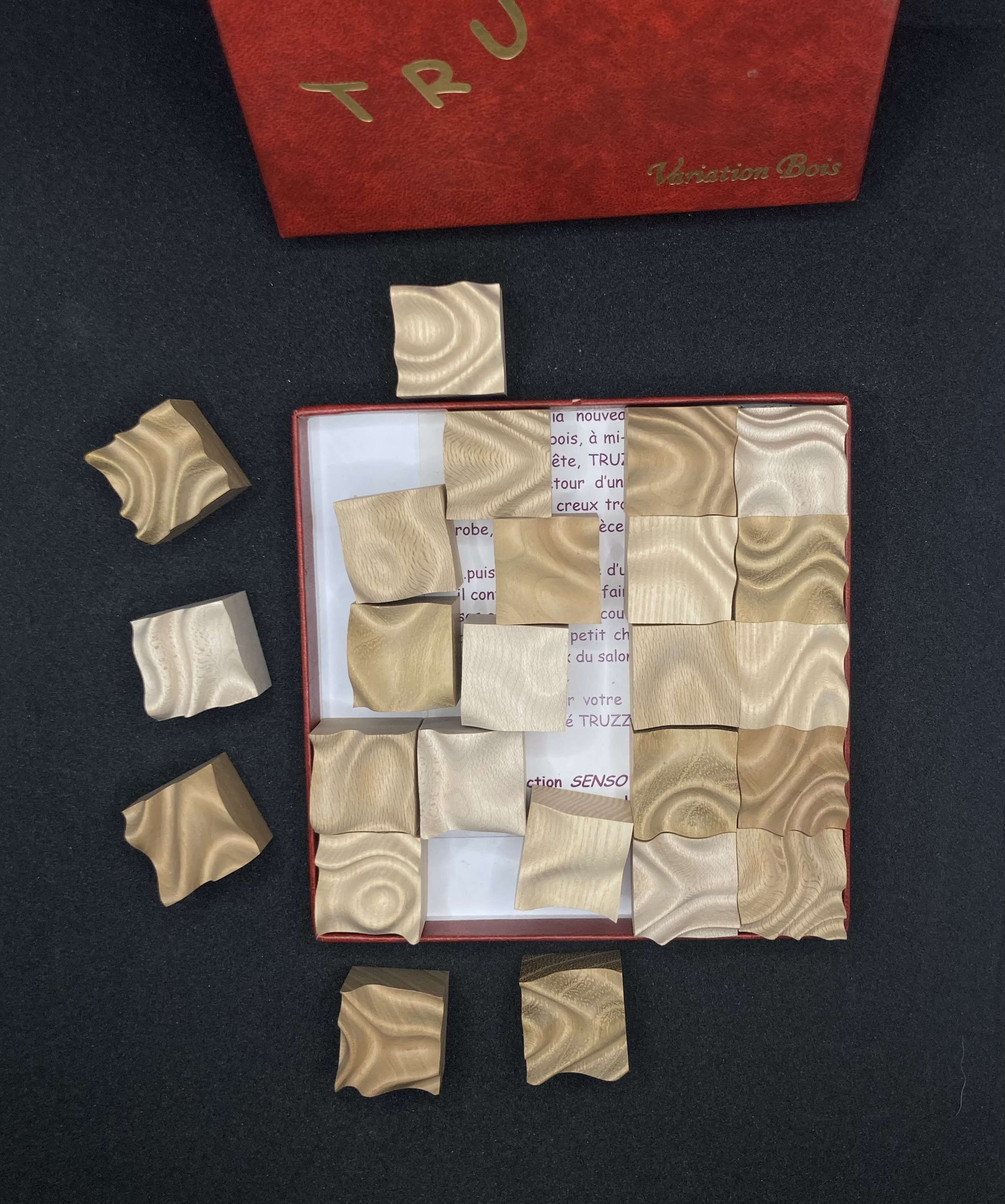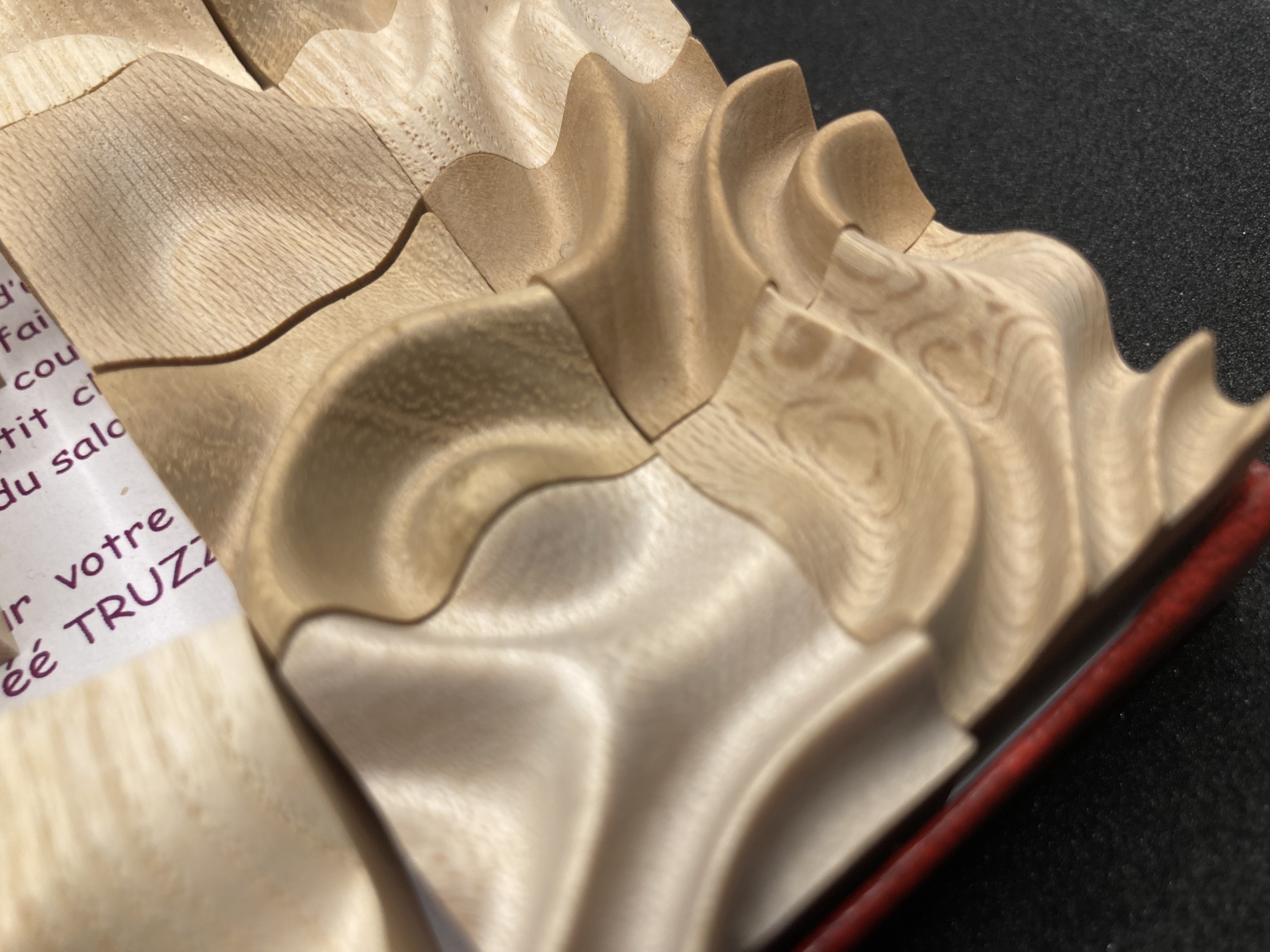 Both a game and a decorative object, TRUZZLE is a sculpted wooden puzzle created and made in France, in the Franche-Comté region, using local wood species. Hours of work and sanding to create this beautiful and original puzzle so smooth to touch.