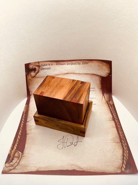 It seems hard to believe that it's been almost 20 years since I first made a small run of this clever packing puzzle design in 2006.  William has graciously allowed me to offer up another run as there were only a dozen copies made in 2006.
