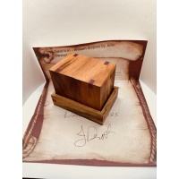 This cool packing puzzle was designed by Brian and is a continuation of Henry’s ‘Train themed’ puzzles.  It was Henry’s gift at the IPP34 Exchange at London, England.There are 6 pieces that need to be packed into the box car, that has one lone block permanently attached.Entire puzzle and pieces were triple buffed to a nice lustre.Please note:I modified the train box portion so it is now glued to the train car (with Olivewood edging) and features a removable lid (inset made from Padauk)...