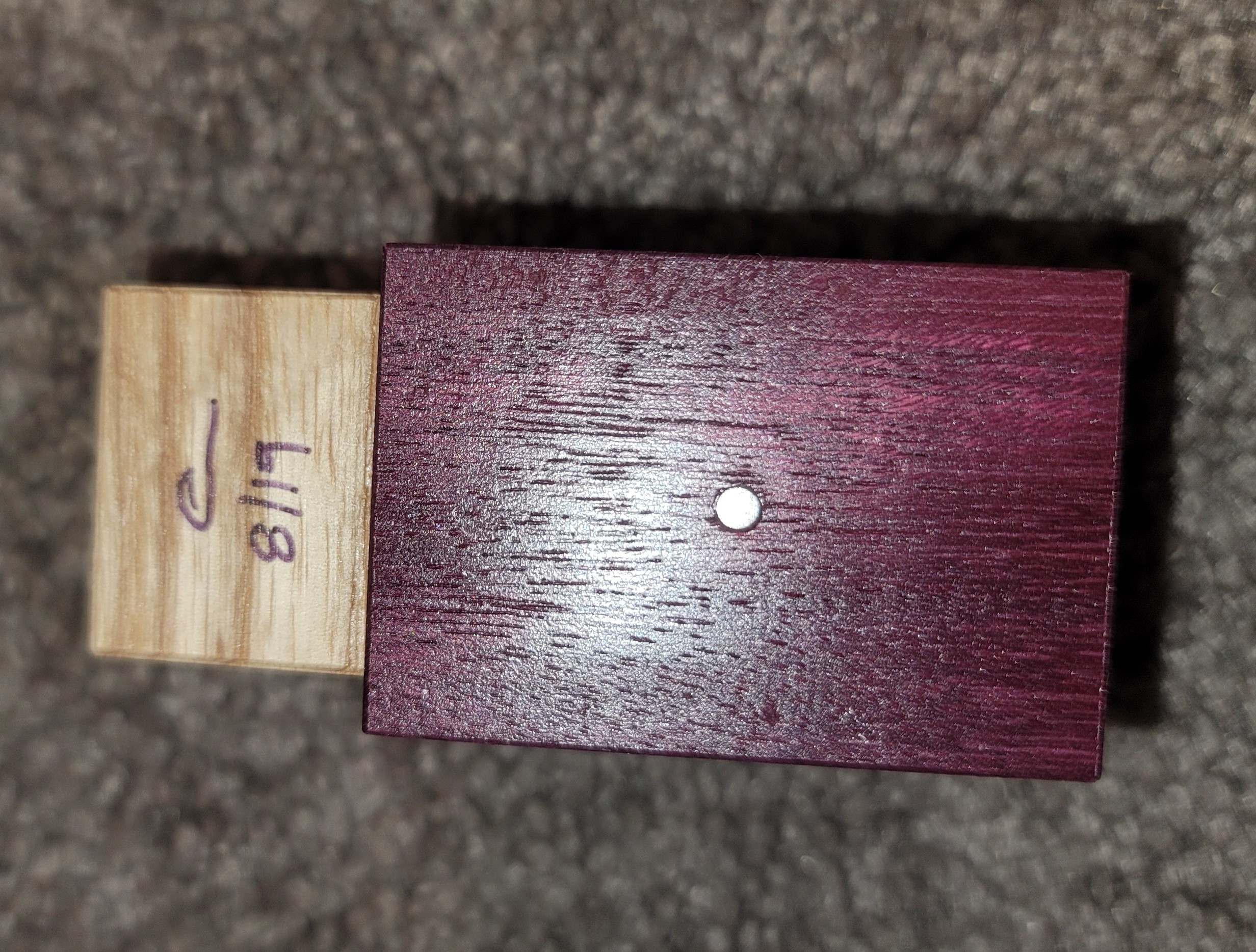This puzzle is in mint condition with sharp corners and beautifully made. Puzzle has been kept safe in a humidity-controlled environment.FROM cubicdissection.com:"DESIGNER: Eric FullerMATERIAL: Quilted Maple, Purpleheart, Stainless Steel HardwareSIZE: 2.375" x 3.375" x 4.5"The idea for the Escalating Box came from a couple of different mechanisms I'd been fooling around with. I was going to release them as two fairly simple separate boxes but realized that I could put them both into one trickier...