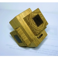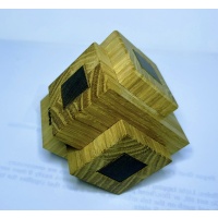 Unique burr type puzzle with the burr sticks going through tubes of wood.