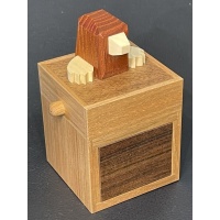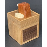 Per the Karakuri website:Karakuri Joint 2craftsmanHiroshi IwaharaITEMRF-76Created11/2022Size(box body)48 x 48 x 96 mmSize(storage part)27 x 29 x 31 mm (x2)Materialwalnut, cherry, magnolia, old oakFacebookTwitter共有This work was designed as a Christmas present for 2022.Based on the previous item with a joint motif (RF-75), I made it with the idea of "a joint that can be played with a little more easily".It is the size of a palm. The material is also changed, and the body has stabilized. It too...