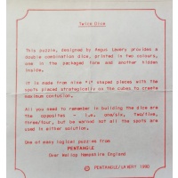 I want to sell the puzzle Twice Dice which was designed by Angus Lavery and build by Pentangle.