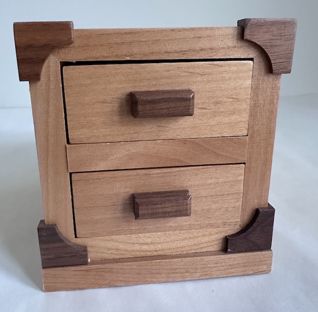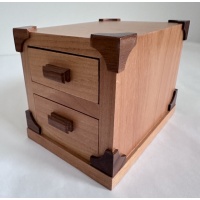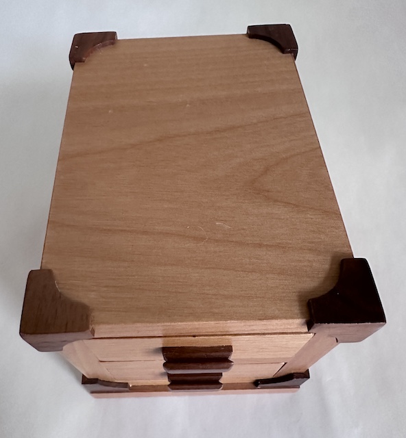 Double Puzzle Box by Hiroyuki Oka - Size 65 X 81 X 60 mm This work was designed as a Christmas present for 2010. This work is Nesting Secret Box.. The inner box's mechanism is traditional. And there is a moving bar called, "Kannuki". Materials - Walnut, Camphor Tree, Magnolia, Agaths, etc. Shipping will be calculated after the auction ends. PayPal Family & Friends accepted.