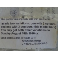 This is a modified puzzle, the number of colors was reduced from 6 to 3 by Carlo.