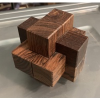 • Uranus, designed by Junichi Yananose, made by Eric Fuller. 30 copies made in 2005. This is not a conventional 6 piece burr, as one of the pieces has been split in two. Eric describes this puzzle on his website: https://cubicdissection.com/products/uranus. Puzzle is in excellent condition.