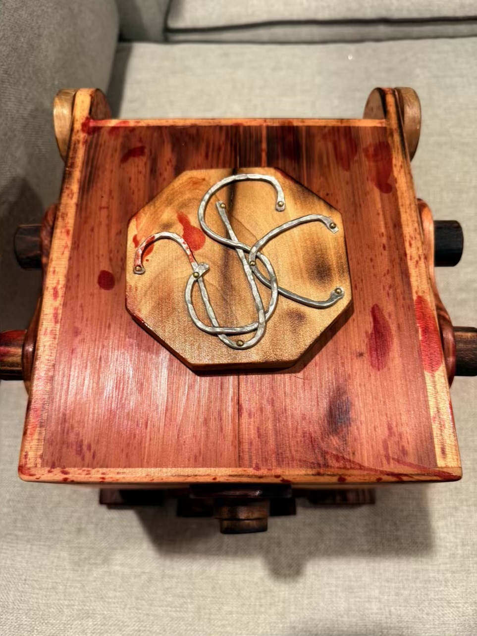 No Way Box, designed by Peter Hajek.Find six queens hidden in the box, and a gear.So many cool tricks and mechanisms in this puzzle, unfortunately it was limited to only 50 available so now is your chance to own oneShipping to US is preferred, if international please be aware of current tariff issuesShipping will be calculated after the auction ends.