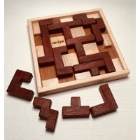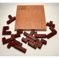 It seems hard to believe that it's been almost 20 years since I first made a small run of this clever packing puzzle design in 2006.  William has graciously allowed me to offer up another run as there were only a dozen copies made in 2006.The original metal version was William’s exchange puzzle at the IPP21 in Tokyo.This version is made using many wood varieties and includes a Stand.  The entire puzzle has been ‘triple buffed’ giving it a very nice sheen.Overall size is a little over 4...