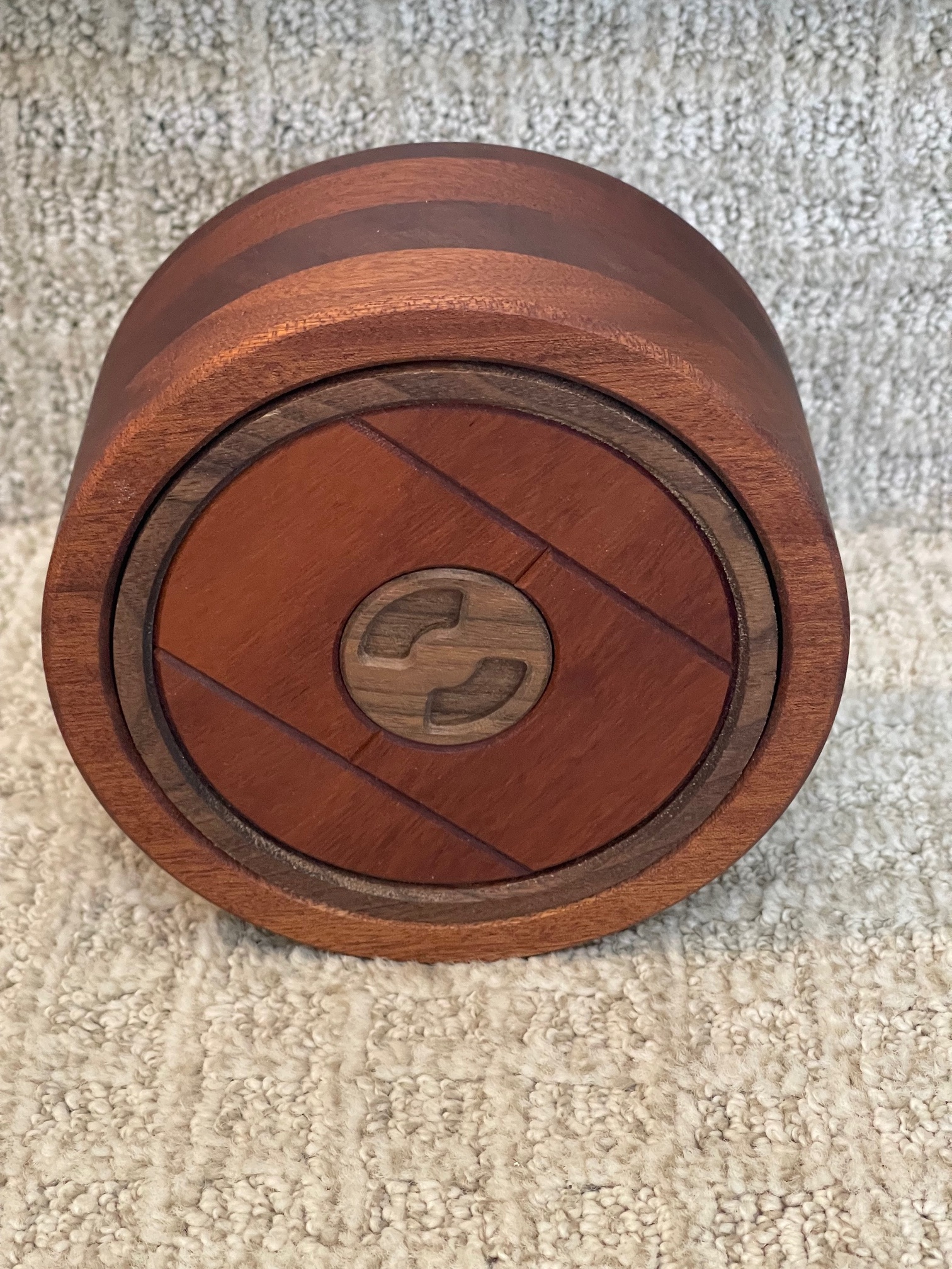 Utilizing your wits and determination, navigate your way through this 15 plus step sequential discovery puzzle to find the DEDwood Crafts logo and claim your victory. Vertigo is crafted using the beautiful woods of Goncalo alves (tigerwood), sapele and black walnut.  Puzzle dimensions are 5.5 inches x 2.5 inches.