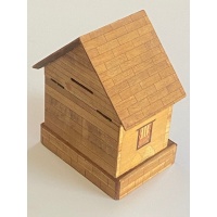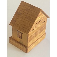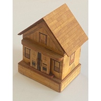 This Vintage Japanese House Puzzle Box Bank measures approximately 5.75 x 4.75 x 3.25 inches.