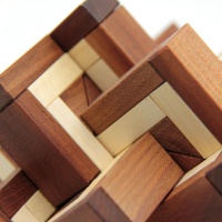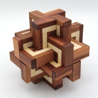 Goal: Take apart and put together. Remove the wooden marble from the puzzle. You can use the inside space to hide a gift.