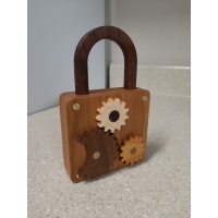 What an incredible and complex SD puzzle lock, and it's big! (6.5 x 4 x 1.5") Dylan did a phenomenal job, I was beyond impressed! It's a beautiful and intriguing lock just from its appearance alone, with the gears begging to be manipulated, but the solve is next level! There's a lot going on, some really cool mechanisms and complex innards that make this feel like a Juno infused wooden Popplock!