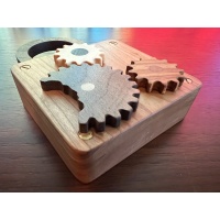 Little Johnny, however, found what looked to be an ornate chest with a strange wooden lock on it. The lock had 3 different gears. He pulled and tugged, but it just wouldn't budge. In his desperation and haste, he grabbed a stone and hit the lock, fracturing a gear. Now will the McGee family ever be able to open the chest and see inside? Help these pioneers solve the mysterious lock.