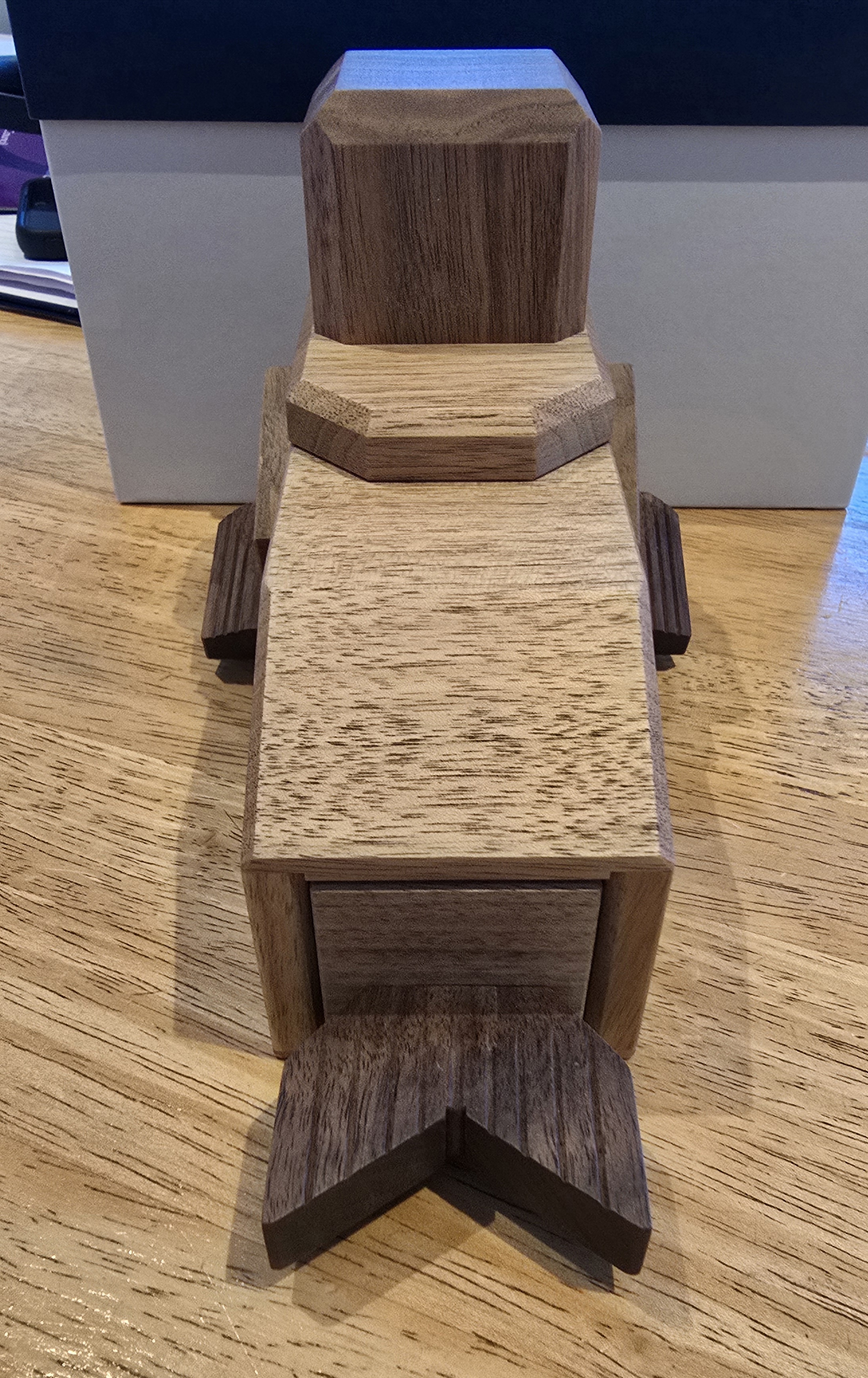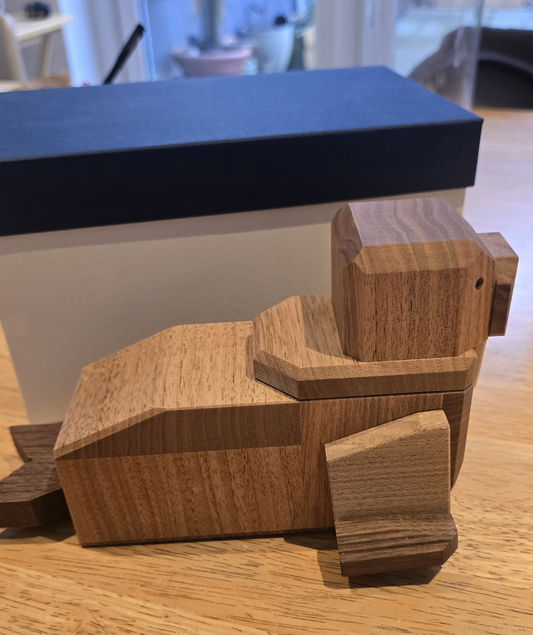 The follow up puzzle to Minima Smiley crafted with cherry and padauk. The puzzle was designed by Frederic Boucher and produced by Pelikan. Compared to its predecessor it has a lot more to offer in terms of puzzling. This was a fun one to figure out. The puzzle has been solved once and carefully reset. I will send the puzzle with the original packaging.Please wait for shipping to be added before paying. Send me a message if you’d like a quote for shipping prices. If you have any questions feel...