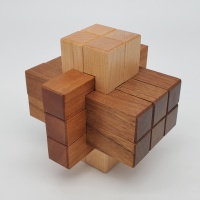• description: A 13-piece rectilinear burr puzzle featuring an innovative “lock-picking” mechanism and asymmetrical rod patterns across different axes. The 2018 edition includes discreet magnets to secure the key piece and is exceptionally well-crafted and beautifully polished by Jerry McFarland.