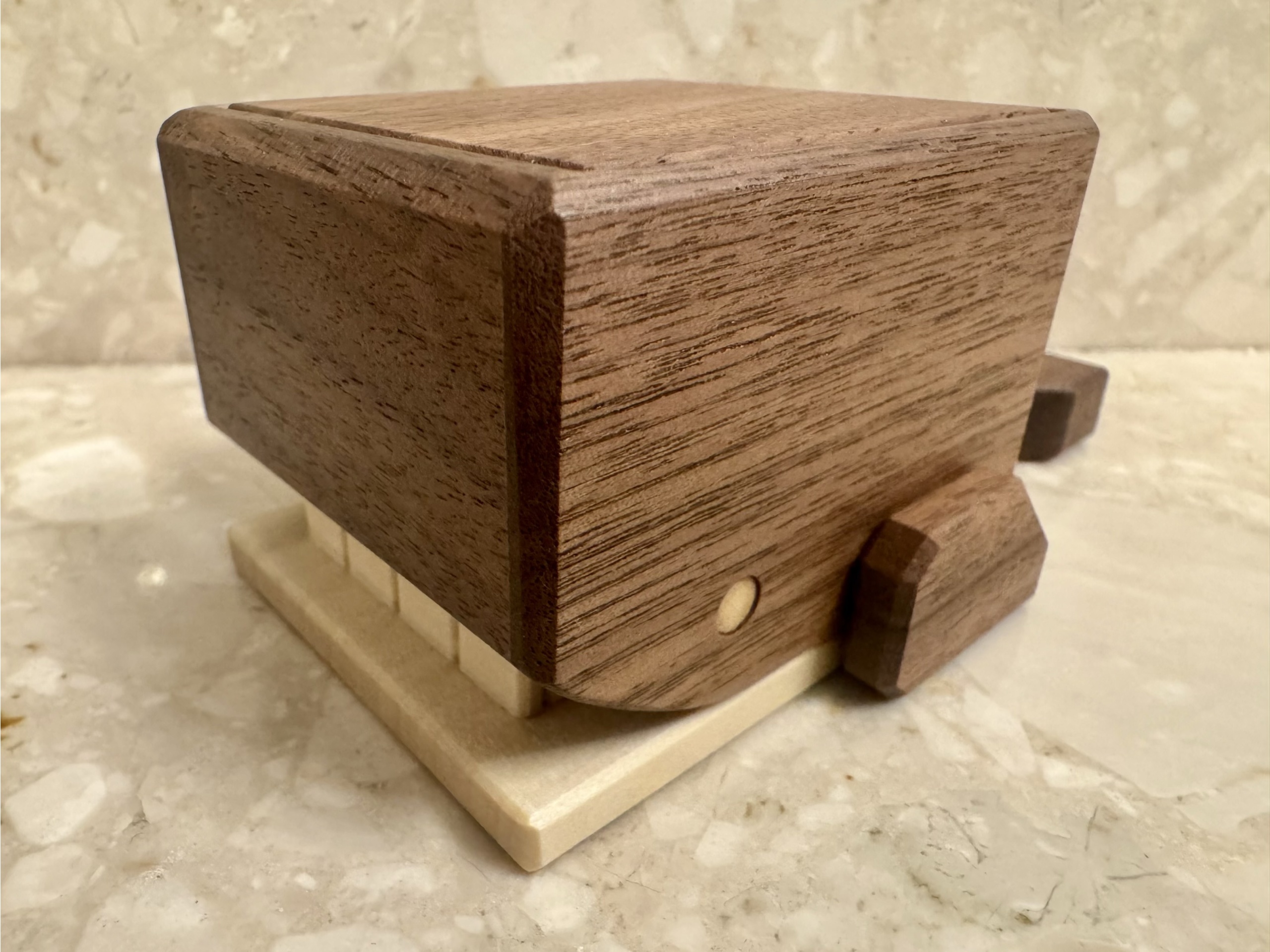 Selling this like new copy of Toad made by Kasho. This puzzle comes with original box. Solution not included as it was a Christmas present. Here is the description from the Karakuri Website :ToadcraftsmanOsamu KashoITEMOS-33Created11/2023Size(box body)84×84×45mmSize(storage part)36×30×17mmMaterialJapanese walnut, mizuki (dogwood), magnoliaFacebookTwitter共有This work was designed as a Christmas present for 2023.A toad-shaped karakuri box. The mechanism is simple, but you may have a bit of...