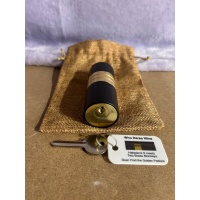 Haleslock 6 embedded within a brass and anodised aluminium cylinder.