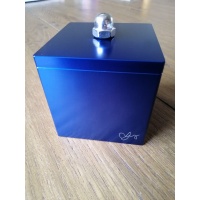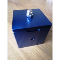 I bought it directly from Wil Strijbos himself and have solved it twice. It has a very clever design and took me a long time to solve. Next to the originality of the puzzle, the blue anodized aluminum looks amazing, so it is really an eye catcher. And it is actually bigger and heavier than I expected (7x7x7 cm and nearly 800 grams!).