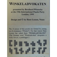 The 14 pieces of this puzzle are formed by joining two L-triominoes ("Winkel" in German).