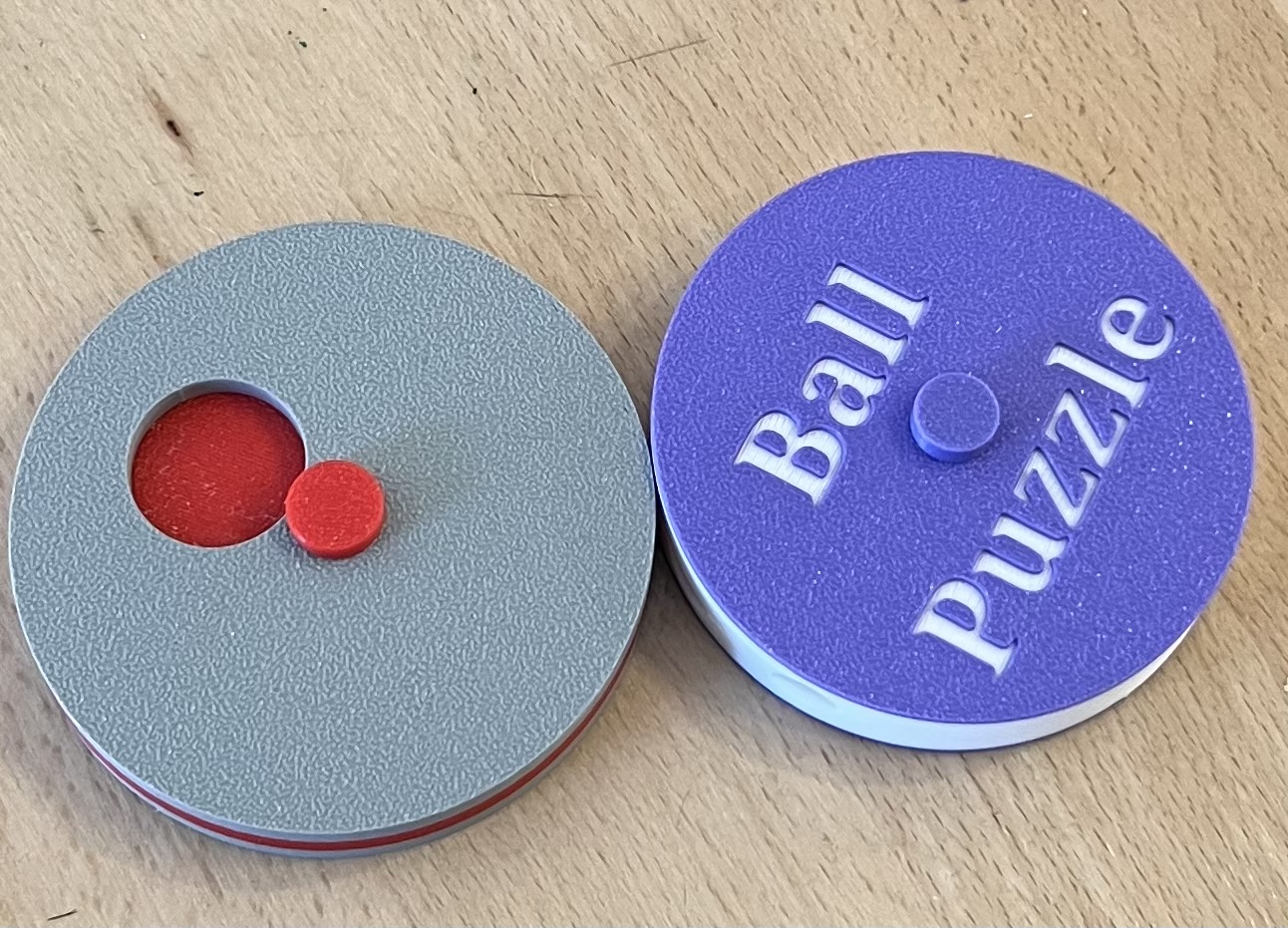 Rediscover the elegance of mechanical ingenuity with Ball Puzzle, a captivating rotational enigma patented in 1986 by Christian Hagelstein, with modern CAD refinement by Justin Brown and production by Team JB Hobbies. Encased in a sleek disc, the goal is to liberate the trapped ball within by deftly rotating its two halves—aligning hidden channels through pure twists, no banging or prying needed, evolving from the original figurine design to a streamlined spherical challenge.