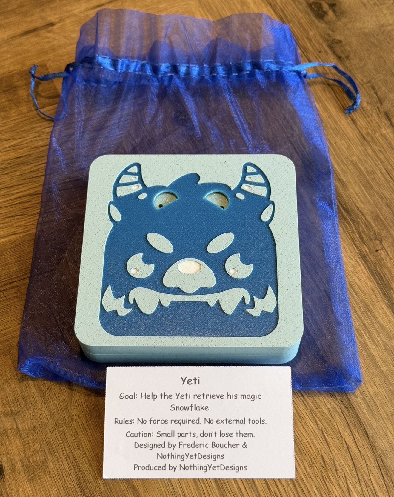 "Yeti!" is a sequential discovery puzzle collaboration between Frederic Boucher and NothingYetDesigns. Produced by NothingYetDesigns.