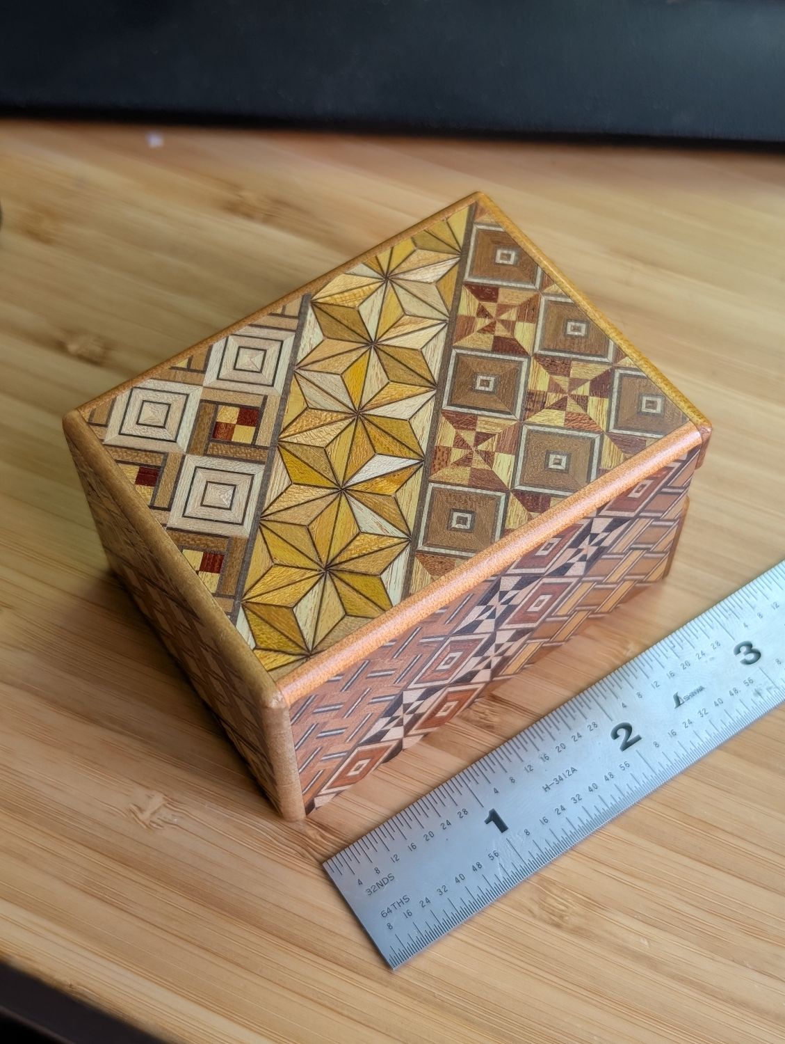I have no idea about how the sizing/sequence descriptions work, I got this one without any documentation, I believe it is a 9-step puzzle, I tried counting the steps to solve but some of the movements are unclear whether it "counts". Anyways, this is a small cute puzzle that I am moving along!