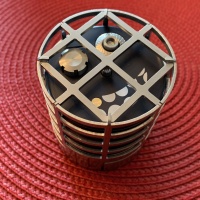 "Introducing the most complex project Rademic Puzzles has ever undertaken. A very special Demonticon trapped in a cage. Our collaboration had this idea bubbling away for some time but it really started when Radek adapted one of Doog’s box mechanisms into a cage. We don't think there's ever been anything like it in the puzzle world. Two separate puzzles that interact to make one whole. The puzzle hides an incredible amount of detail with so much to discover. Tying in perfectly with the overall theme, both the cage and the Demonticon come with special stands. Always with an eye for detail, Radek finished off by designing a real leather bag that evokes a straight jacket. We trust you will enjoy the journey. Good luck. Radek & Doog"